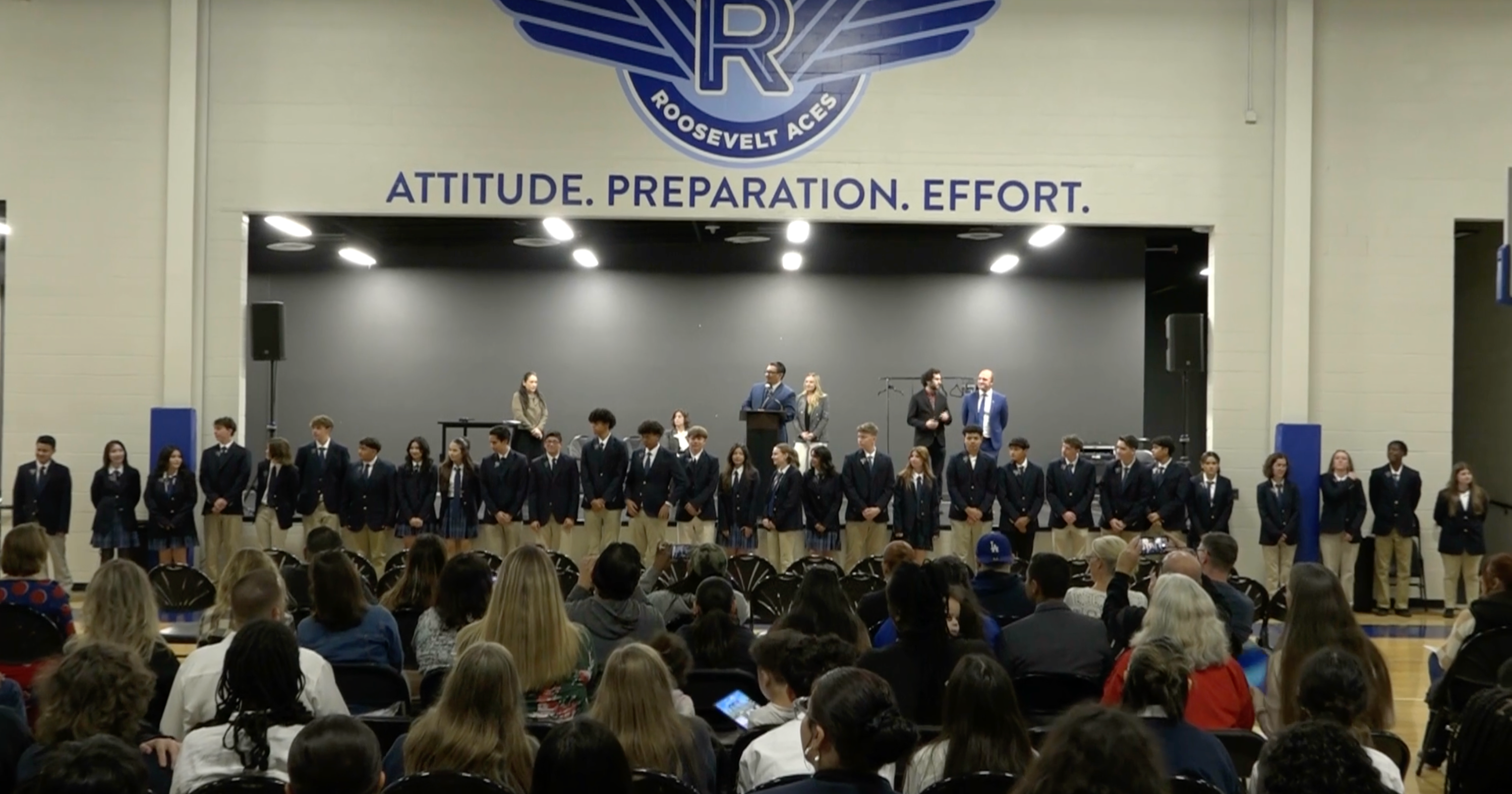 “It is an inaugural event, but this is a tradition at Great Heart schools where our 11th graders are conferred a blazer as part of their uniform,” stated Roosevelt Prep Headmaster Tony Cruz, addressing the student body and faculty at the ceremony. “The uniform is just another way of cultivating in your student hearts the pursuit of Truth, Goodness, and Beauty.”